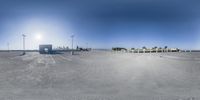 a 360 - fisheye photo of parking lot area for a city park where two vans parked