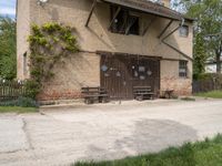 This stunning stock photo features a scenic rural landscape in Germany. The clear sky above adds a touch of serenity, while the vibrant green fields showcase the beauty of nature. The image showcases a picturesque road cutting through the landscape, surrounded by lush vegetation. In the foreground, you can spot a charming barn and a cozy house, adding to the idyllic charm of the scenery. The concrete street and gravel road blend seamlessly, making it a perfect destination for a leisurely drive or a peaceful walk. This image captures the essence of rural life in Germany, offering a glimpse into its agricultural heritage and natural beauty.