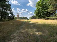 This is an image of a landscape in Berlin, Germany. The photo captures a straight road surrounded by lush vegetation and forests. The road surface is made of gravel and dirt, perfect for off-road tracks. The green fields and shrubs add to the natural beauty of the scene. Above, clouds decorate the sky, creating a picturesque backdrop. This photo represents the beautiful nature and agricultural landscapes found in Berlin.