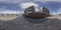 A modern luxury apartment building under construction in Bremen, Germany. The building's facade stands out against the clear sky, while the surrounding urban landscape and coastal view create a stunning profile. A glimpse into the city's architectural future.