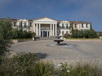 A stunning classic architecture mansion located in a residential area of Los Angeles. The elegant villa features a spacious courtyard, a beautiful driveway, and open spaces surrounded by nature. Enjoy the sunny California weather and indulge in the luxury of this suburban paradise.