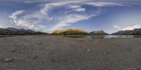 the mountain top is in this image with an eye panoramic view of the water