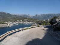 This captivating stock photo captures a scenic coastal road in Mallorca, Spain. The road, paved with smooth asphalt, curves gracefully alongside the majestic mountains, offering breathtaking views of the ocean. In the distance, the mountains are adorned with boats, adding a touch of serenity to the landscape. It is a bright and sunny day with a clear sky, making this the perfect destination for nature enthusiasts and adventure seekers. The road's elevation and the presence of switchbacks add an exciting high to the journey. The Armco barrier ensures the safety of travelers as they navigate through this picturesque part of Europe, located in the enchanting Balearic Islands.