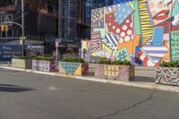 Man Walking Down the Street in front of Colorful Graffiti Wall in Manhattan, New York