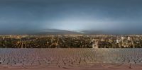 this is an image of the view from above a roof in a city at night