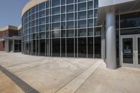 The Martin Center, a modern and sleek corporate headquarters located in the heart of East Tennessee's business district. The urban design features a facade of composite materials and glass windows, reflecting the clear sky. A dynamic symbol of city life.