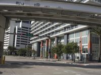A modern architecture marvel in the heart of Miami Beach, Florida. The high-rise condominium is surrounded by lush vegetation, offering shade and tranquility in the midst of the bustling city. The urban design includes a sleek asphalt road leading to the building with a bridge and underpass for easy access. This vibrant neighborhood showcases the vibrant city life of Miami.