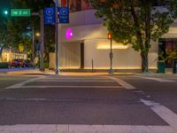 This is an image of a night scene in Miami Beach, Florida, USA. The photo captures the modern architecture and urban design of the city. The artificial street lights illuminate the crosswalk and the road, creating a vibrant and lively atmosphere. The storefronts of various shops illuminate the street with their lights, showcasing the city's vibrant nightlife. This photo represents the vibrant city life of Miami Beach and the bustling urban environment. It is a perfect representation of the energy and excitement found in this vibrant city.