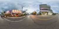 this is a 360 - angle photo of a restaurant in the city streets of florida