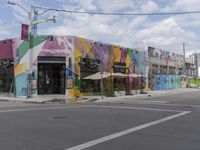 This vibrant image captures the essence of Miami's street art scene in a suburban neighborhood. The graffiti-covered walls, colorful paintings, and urban design create a visually striking scene that reflects the city's artistic spirit. The picture showcases a gloomy day with a grey sky, adding a touch of urban charm to the overall composition. The residential buildings, houses, and street lights give a sense of a typical Miami suburb. The road surface with its asphalt and tire marks adds a realistic touch to the image. The artwork on the walls showcases various art styles, making this a perfect representation of the city's diverse art district. This photo is ideal for illustrating urban life, cityscapes, or the unique cultural landscape of Miami.