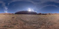 the view looking at a rock on top of the hill, looking very like the sun