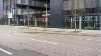 This stock photo showcases the modern architecture in Berlin, Germany. The city's metropolitan area is known for its impressive skyline, featuring numerous office buildings and residential areas. In this image, we see a modern building in a business district, with a combination of glass facades and windows. The surrounding public space is well-designed, with asphalt roads, tree-lined sidewalks, and curbs. The day lighting enhances the beauty of the urban landscape. Berlin is a major city in Europe, known for its business opportunities and urban design.
