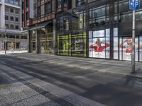 This stock photo showcases a road near a city in front of several large windows with advertising in a lot behind. The image captures the essence of city life in Berlin, Germany, with its modern architecture and bustling urban design. The reflection on the asphalt road gives the image a unique perspective. The vibrant storefronts and busy pedestrian activity add to the energetic atmosphere of this metropolitan area. Friedrichstraße, a famous tourist attraction in Berlin, is known for its shopping and tourist spots. This photo perfectly encapsulates the blend of tourism, urban life, and European charm.