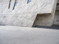 A modern architecture museum in Spain, with a white concrete facade and wooden accents. The building stands against a rocky road surface in Tenerife. Its sleek lines and contemporary design add to the charm of this European gem.