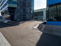 A modern high-rise building with sleek architecture and large windows in the heart of a bustling European city. The surrounding neighborhood is filled with business districts and condominiums, creating a vibrant urban atmosphere.
