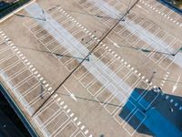 Aerial view of a modern architectural marvel in Holland. Elevated concrete road and parking deck blend seamlessly with the urban design. Open spaces showcase the sleek lines and high slope of the structure.