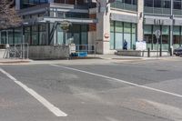A view of a modern urban cityscape in Toronto, Ontario, Canada. Tall buildings with multiple windows line the streets. Busy roads with asphalt surfaces and crosswalks create a bustling city life. The urban design features low entry driveways and parking lots.