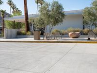 This stock photo features a stunning example of modern architecture in Palm Springs, California. The clean lines and sleek design of this residential villa make it a standout in the city's suburban neighborhood. With the clear sky and palm trees in the background, it captures the essence of urban living in Southern California. The concrete surface of the house blends seamlessly with the surrounding environment, giving it a contemporary and stylish look. Whether you're in the real estate business or looking for inspiration for your own home, this image is perfect for showcasing modern architecture with a touch of luxury.
