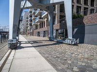 A clear sky over Hamburg, Germany showcases the modern architecture of a residential area. The city's vibrant urban design is evident in the sleek facades and bustling public spaces. Explore the charming cobblestone streets and enjoy the city life along the picturesque harbor.