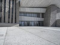 A modern architectural masterpiece in Tenerife, Spain. This low concrete building features a futuristic facade with gray pillars and a white roof. The open space square in the middle adds to the building's unique design.
