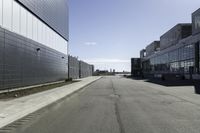 This stock photo depicts a scenic view of modern architecture in Toronto, Canada. The image showcases a low-rise residential building surrounded by an asphalt road and a suburban residential area. The clear sky overhead adds to the peaceful atmosphere of the scene. The straight road disappears into the distance, creating a sense of depth and perspective. The modern design of the building and the urban surroundings highlight the urban design and development of Toronto. The photo was taken during the day, capturing the beauty of the dawn with few clouds in the sky. Overall, this image represents the suburban charm and urban lifestyle of Toronto's residential neighborhoods.