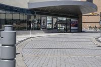 A photo of a street corner in Toronto, Ontario, Canada, showcasing a modern architectural building with a clock mounted to the outside of its front window. The building is part of a mixed-use development and is located in the busy business district. The image captures the straight road leading to the building, with a well-designed plaza, flooring, and road surface. The public space features a courtyard and urban design elements. The photo depicts a typical day in the bustling city of Toronto, highlighting the vibrant city life and the contemporary urban landscape. The image is perfect for illustrating concepts related to urban living, architecture, cityscape, and business.