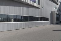 This stock photo showcases a modern architecture office building located in Toronto's bustling business district. The building's facade is made of a composite material, with large windows and glass panels. The urban design of the building is highlighted by the surrounding open spaces and asphalt road. The metal walls and rectangular shape of the building, along with the shades created by its architecture, create a captivating visual.