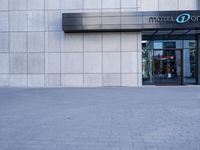 This photo shows a gray concrete building with metal cladding and doors, situated on a brick sidewalk. It is an example of modern architecture in the vibrant city of Berlin, Germany. The building's sleek facade, large windows, and open space design make it a striking addition to the urban landscape. The lines, walls, flooring, roof, and glass elements are meticulously designed, enhancing the architectural profile of the structure. With its contemporary style and prime location, this building could be the perfect property for a home, office, hotel, or any real estate venture. The photo was taken during the day, capturing the lighting and surface textures of the concrete material property. This visually appealing photo represents the dynamic architectural scene of Berlin and Europe as a whole.