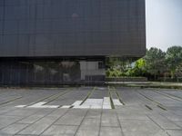 A modern European architecture museum in Porto, Portugal, under a clear sky. The building's profile casts hard shadows on the paver surface. Urban open space showcases exquisite architectural design in the heart of Porto.