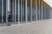 A modern glass-facade office building in a bustling city. The sleek and symmetrical design reflects futuristic architecture. The busy business district comes alive against the backdrop of concrete and glass. A true architectural masterpiece.