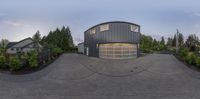 A modern house in Seattle's Westside neighborhood, showcasing sleek architecture and clean lines. The yellow facade stands out against the clear sky. The concrete driveway leads to the grey garage door, while the lush vegetation adds a touch of nature.