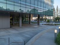 This stock photo showcases a modern architectural wonder located in Los Angeles, California, USA. The building features an exquisite blend of metal stairs and glass walls, surrounded by lush grass bushes. The stairs lead to the top, offering a mesmerizing view under the clear sky. The city life of this urban design is evident from the concrete surface and the hard shadows cast by the striking structure. Capture the essence of urban beauty and contemporary design with this captivating image.