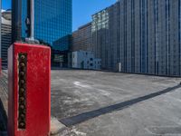 A modern office building in the bustling business district of Atlanta, Georgia. Clear sky and open urban spaces reveal sleek architecture. Rooftop parking deck overlooks the city skyline, a perfect blend of urban design and city life.