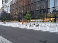 This stock photo shows a modern office building located in the financial district of Berlin, Germany. The photo is taken at dawn, with the soft morning light illuminating the glass-walled structure. The building's futuristic architecture and sleek design stand out against the city skyline. Surrounding the building is a bustling urban neighborhood, with roads and asphalt providing a clear path for city life. Tall high-rise buildings can be seen in the distance, adding to the urban landscape. Lush vegetation and trees line the roads, giving a touch of greenery to the concrete jungle. The photo captures the energy and essence of the city, making it a perfect representation of urban design and architecture in Berlin.