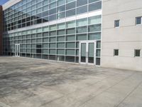 A modern office building in the heart of a bustling city. The sleek architecture and concrete streets reflect the urban design of the business district. Clear skies and hard shadows highlight the structure's features.