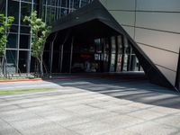 Modern Office Building Entrance with Fire Hydrant and Glass Windows