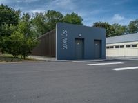 A modern office building in a European business district. Clear skies overlook industrial factories and residential suburbs. The architectural landscape blends with open spaces and lush vegetation.