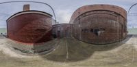 three spherical images are taken by the same image on camera, including a skateboard ramp and the same image
