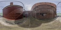 three spherical images are taken by the same image on camera, including a skateboard ramp and the same image