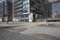 This stock photo showcases the stunning modern architecture of a residential building located in Toronto, Ontario, Canada. The mix of residential and commercial spaces in this neighborhood creates a vibrant and dynamic urban environment. The building's sleek facade, clean lines, and contemporary design make it an impressive addition to the city's skyline. Surrounding the building, you can see the open spaces, tree-lined streets, and well-maintained road surfaces that are characteristic of this suburban area. The clear sky overhead adds to the overall appeal of the image. This photo is perfect for illustrating concepts related to urban design, residential areas, and business districts in Toronto.