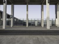 This stock photo showcases a stunning piece of modern urban architecture. The building's facade is made of composite materials and features large glass windows and towering columns. The symmetrical design creates a sense of balance and elegance. The surrounding metropolitan area can be seen in the background, with a road surface leading to the entrance of the building. The photo captures the essence of a bustling city and its contemporary architectural marvels.