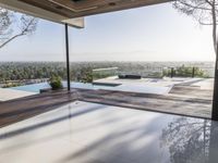A modern villa in Los Angeles, California, showcasing stunning architecture and interior design. The open floor plan allows for ample sunlight throughout the day. A beautiful garden and backyard overlooks the sunny cityscape.