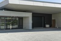 A modern residential villa in the heart of Toronto's business district. The grey concrete facade contrasts with the clear sky. The open space courtyard is adorned with cobblestone flooring. A perfect example of urban design and architectural beauty.