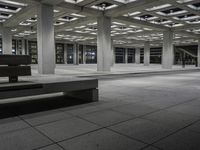 A monochrome image showcasing the architectural beauty of a city building. The facade and flooring of the building reflect a unique style. The interior design features ceiling fixtures and vegetation, creating a stunning visual composition.