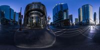 an image of a city taken from the street and a fisheye lens on the ground