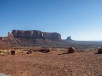 Open space landscape in Monument Valley, Arizona. Clear sky enhances the natural beauty of the sand surface. An iconic USA destination showcasing the beauty of nature on a sunny day.