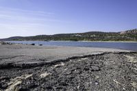 A stunning coastal landscape with rugged mountains in the background. Clear sky above, and a calm ocean stretching to the horizon. A scenic drive leads to the entry of this breathtaking natural beauty.