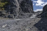 A rugged and steep mountain landscape in New Zealand's North Island. Rocky formations and bedrock outcrops provide a challenging surface for off-road adventures. Cloud-covered slopes add to the natural beauty of this rugged terrain.