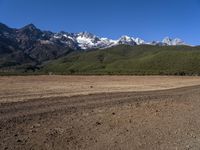 This is a scenic landscape photo taken on a clear day in Yunnan, China. The image showcases a winding road surrounded by tall grass and mountains in the background. The dirt track cuts through the highlands and offers a view of a traditional village nestled in the wilderness. The village features historic architecture and is surrounded by a picturesque mountain range. This photo represents the beauty of the natural environment in Yunnan, a region known for its stunning landscapes and old towns.