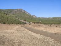 This is an image of a road surrounded by a beautiful landscape in Yunnan, China. The dirt road winds through the mountainous terrain, with open spaces and trees lining the path. The highland hills and mountain landforms provide a stunning backdrop to this natural environment. In the distance, you can see a village with historic architecture, showcasing the old town charm of the region. The geology of the area is evident in the cliffs and gravel along the road. This photo captures the wilderness and beauty of Yunnan, a hidden gem in Asia.